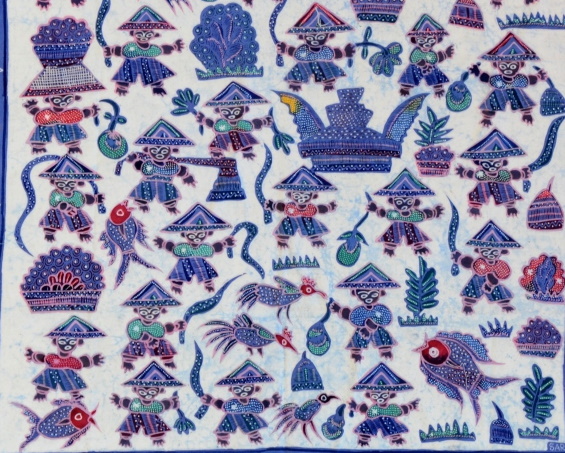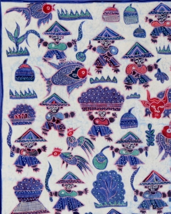 Jedes Batik-Detail ist sorgfältig mit Wachs aufgebracht, bevor es in aufwendigen Arbeitsgängen gefärbt wurde.
