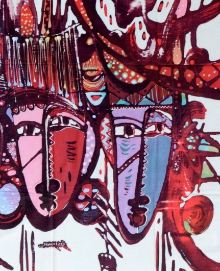 Batik balinesisches Stoffbild Masken farbig, 75 x 90 cm