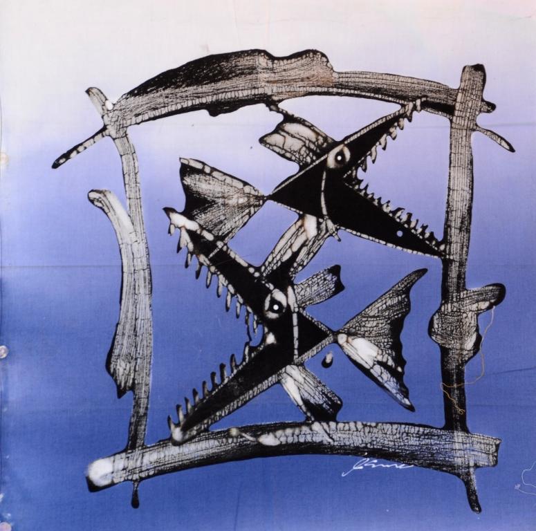 Mit dem schönen Fische-im-Rahmen-Motiv ist dieses Batik-Kunstwerk einzigartig und nur einmal verfügbar.
