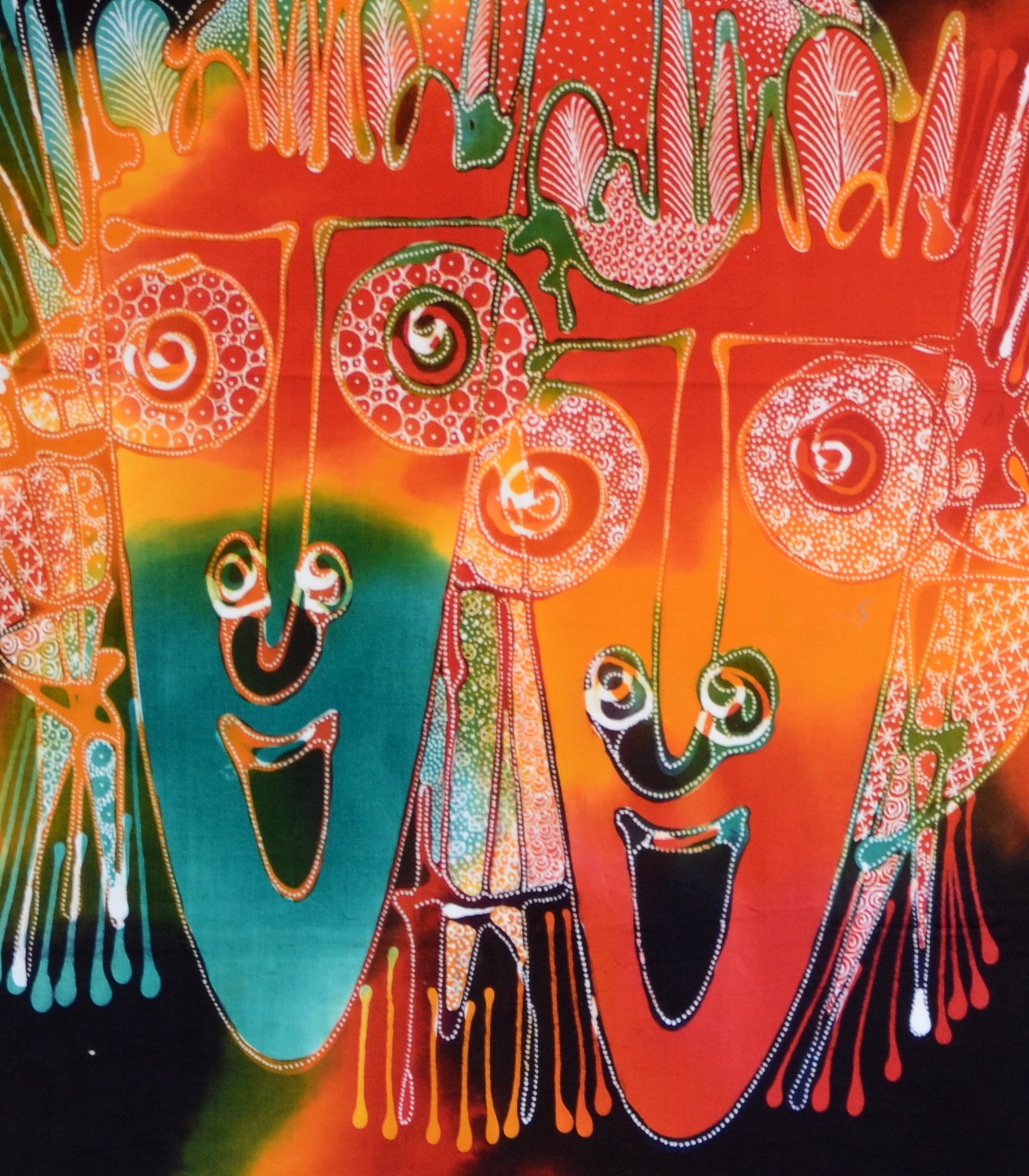 Batik balinesisches Stoffbild 2 Masken, 45 x 75 cm