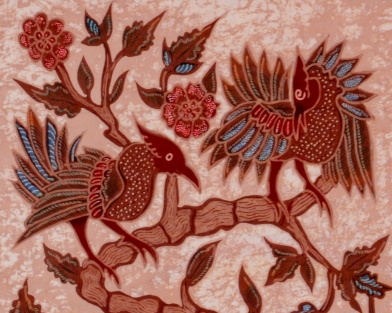 Jedes Batik-Detail ist sorgfältig mit Wachs aufgebracht, bevor es in aufwendigen Arbeitsgängen gefärbt wurde.