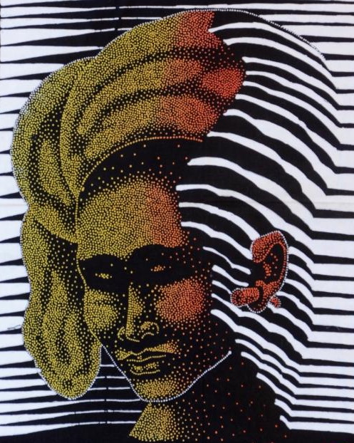 Balinesisches Batik Stoffbild mit einer phantasievollen Büste – ein einzigartiges Kunstwerk