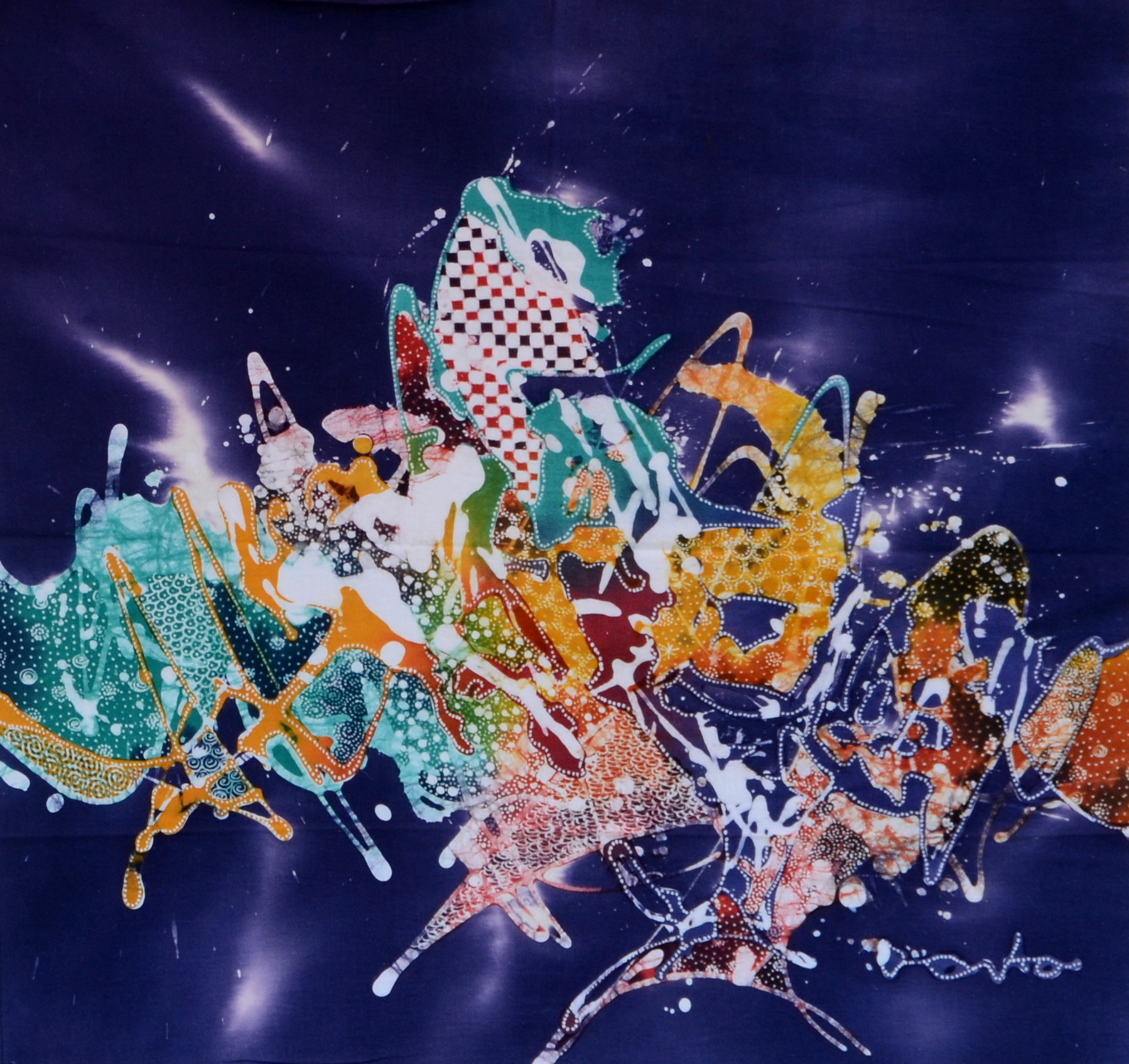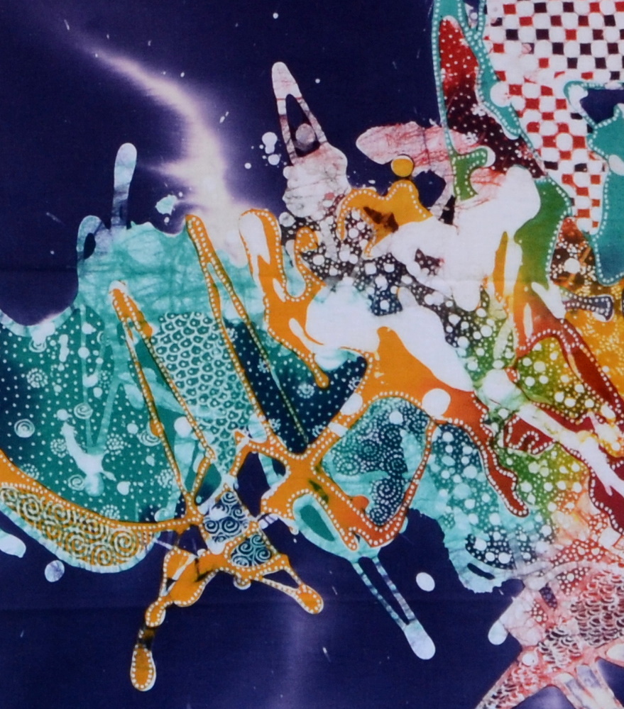Balinesisches Batik-Bild mit farbenfrohem abstrakten Motiv – ein einzigartiges Kunstwerk