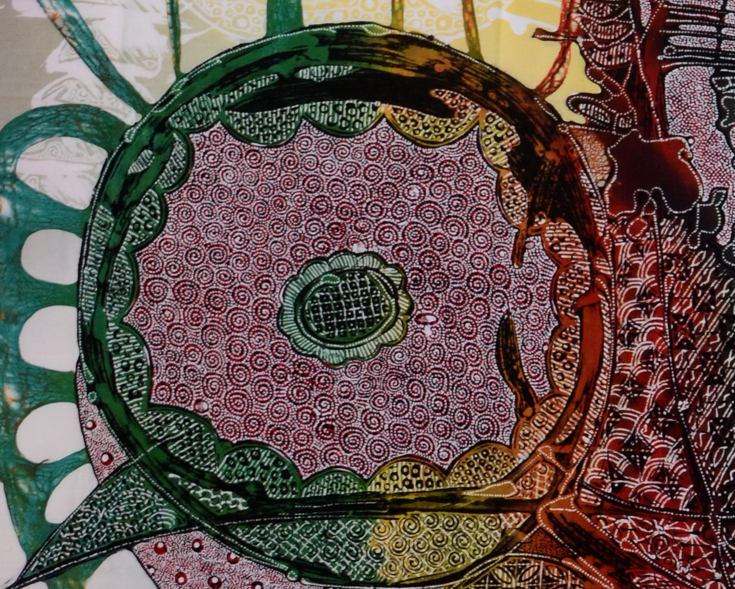 Jedes Batik-Detail wurde sorgfältig mit Wachs aufgebracht, bevor es in aufwendigen Arbeitsgängen gefärbt wurde.