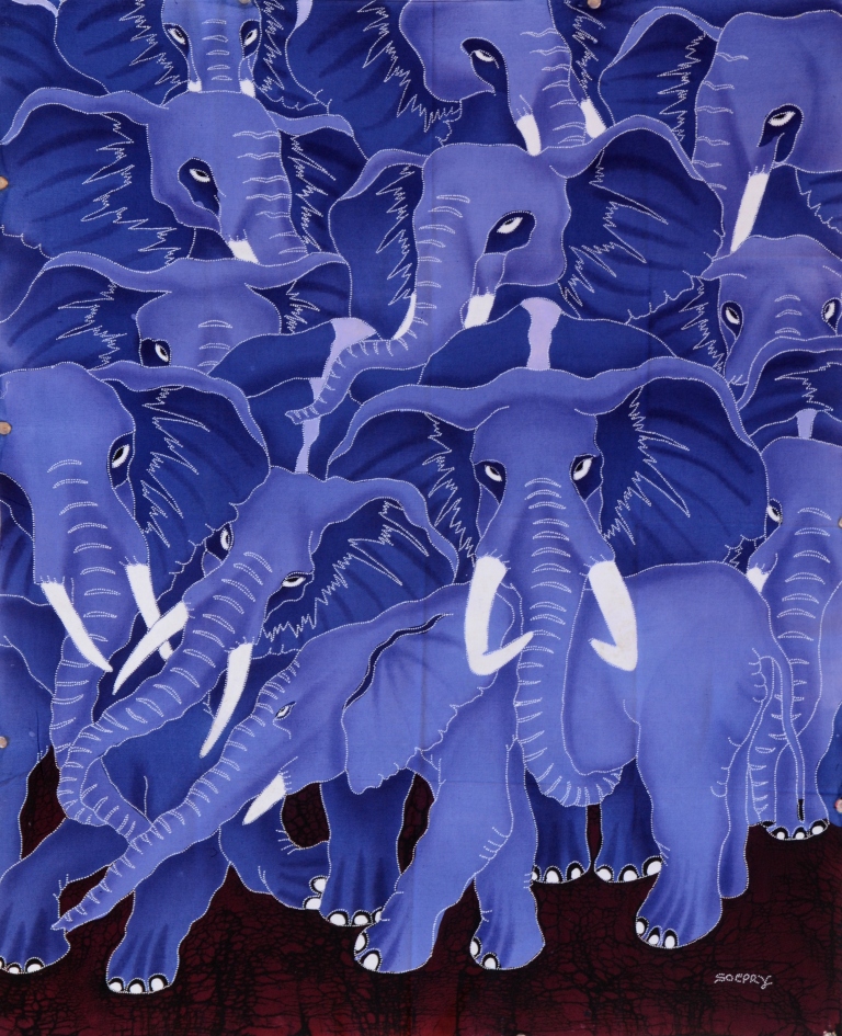 Balinesisches Elefanten in der Horde Batik Bild – ein farbenfrohes Unikat und wahrer Blickfang