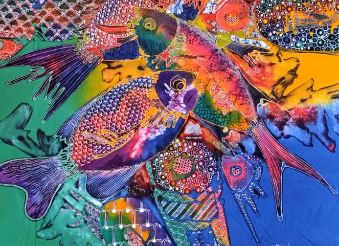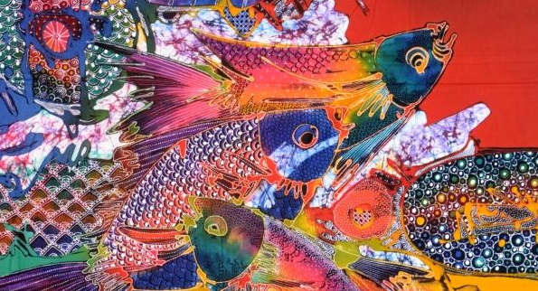 Balinesisches Fische Familien Batik Stoffbild – ein farbenfrohes Unikat und wahrer Blickfang