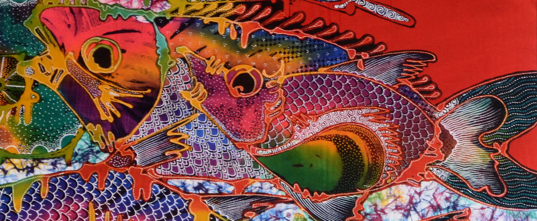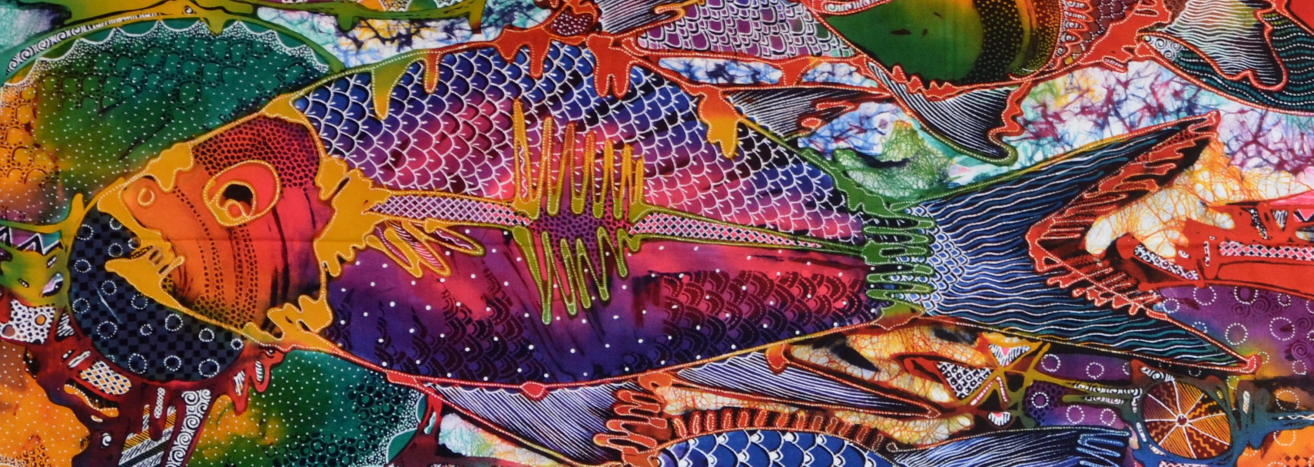 Balinesisches Fische Schwarm Batik Stoffbild – ein farbenfrohes Unikat und wahrer Blickfang