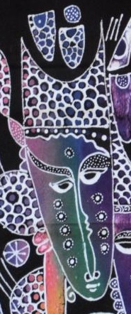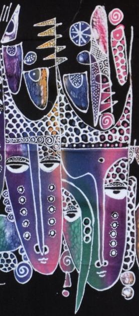 Balinesisches Batik Stoffbild mit Masken-Trio – ein einzigartiges Kunstwerk