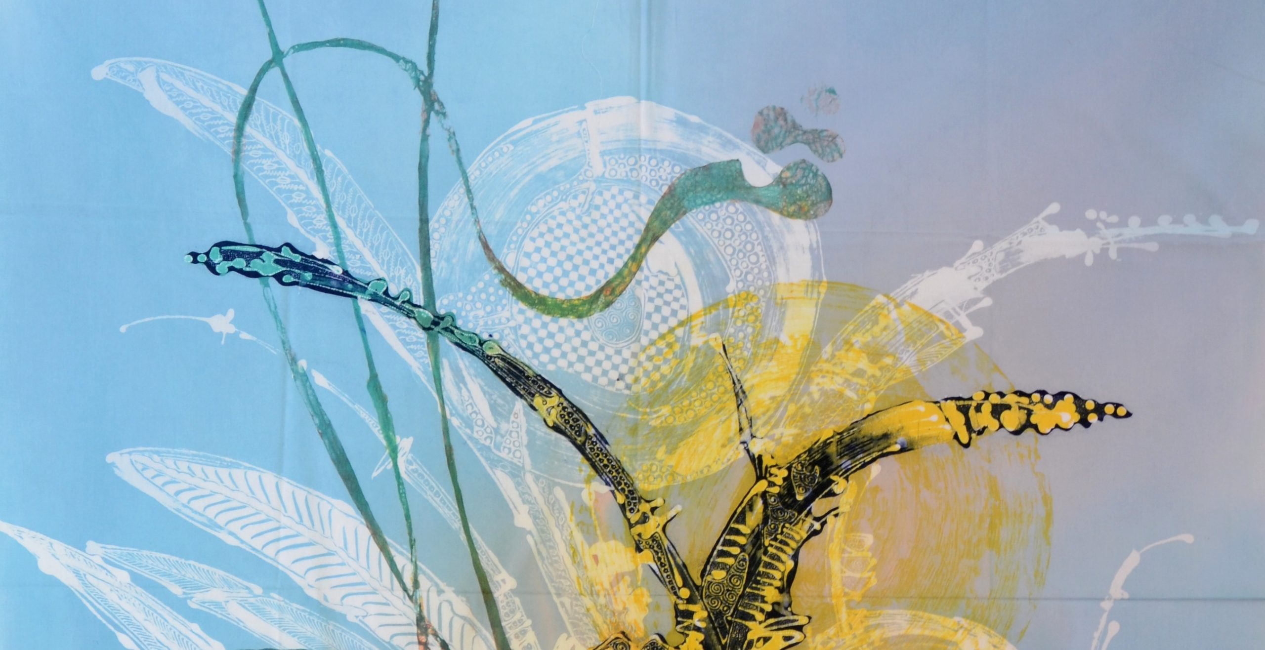 Abstraktes Schmetterlings Batik Stoffbild – ein farbenfrohes Unikat und wahrer Blickfang