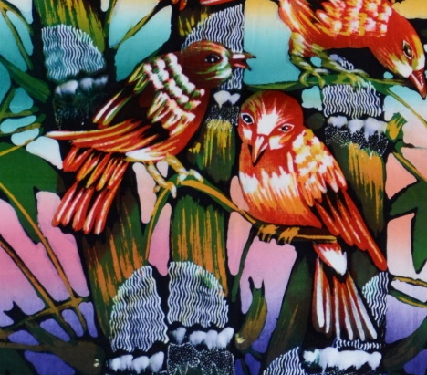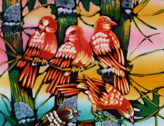 Balinesisches Vogel Schwarm Batik Stoffbild – ein farbenfrohes Unikat und wahrer Blickfang