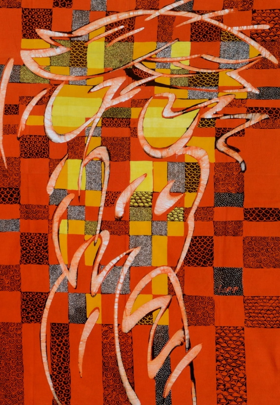 Sehr schön wirkt dieses Batik-Stoffbild in einem rahmenlosen Bilderrahmen oder aufgespannt auf einen schönen Rahmen.