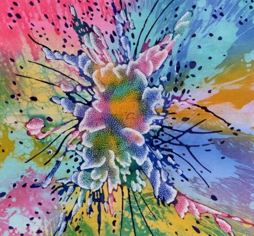 Batik Bild balinesisches Stoffbild Regenbogen-Klecks, 90 x 100 cm