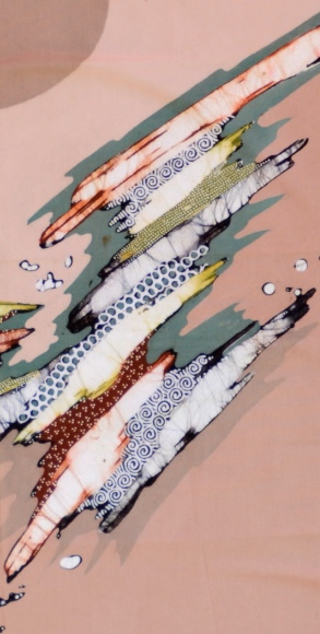 Sehr schön wirkt dieses Batik-Stoffbild in einem rahmenlosen Bilderrahmen oder aufgespannt auf einen schönen Rahmen.