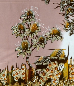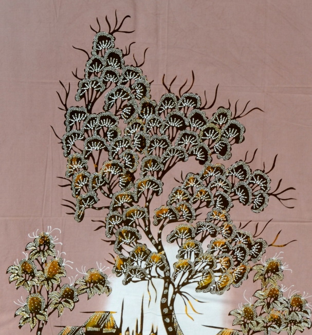 Gefertigt mit natürlichen Farbpigmenten und in traditioneller Batik-Arbeit hergestellt, zeigt dieses Bild ein abstraktes Motiv von 75 x 90 cm Größe.
