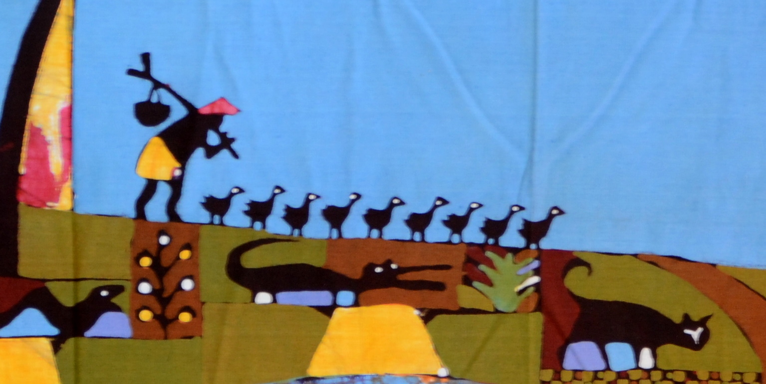 Die traditionelle Technik, bei der das Motiv vor dem Färben mit Wachs aufgebracht wird, verleiht dem Bild sicherlich eine besondere Tiefe und Textur.