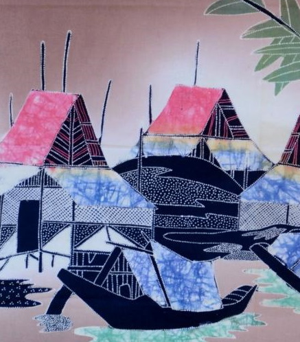 Das Batik-Bild mit dem wundervollem Hütten-Motiv wirkt wirklich beeindruckend!
