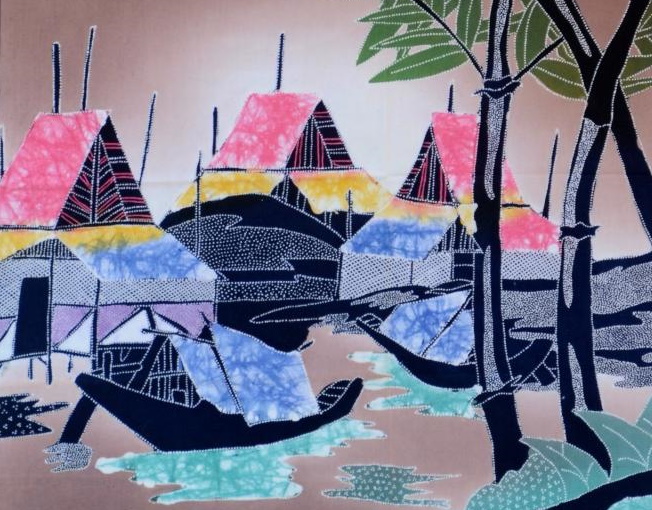 Dieses Batik-Bild mit dem schönen Hütten-Boote-Motiv ist ein echtes Highlight.
