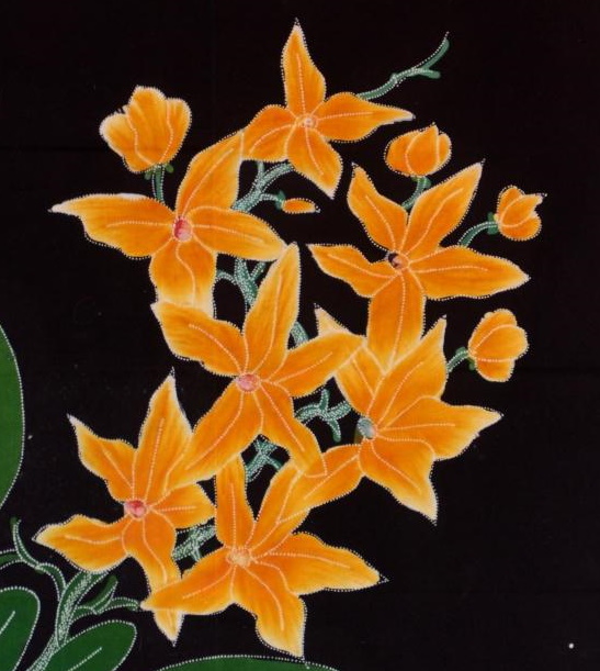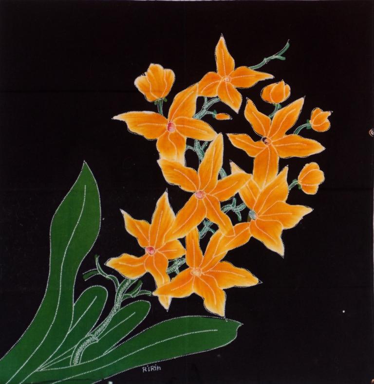 Das Batik-Bild mit dem wundervollen Orchideen-Motiv wirkt wirklich beeindruckend!