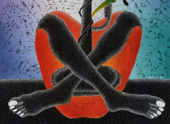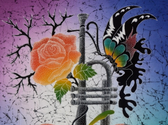 Die traditionelle Technik, bei der das Motiv vor dem Färben mit Wachs aufgebracht wird, verleiht dem Bild sicherlich eine besondere Tiefe und Textur.
