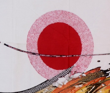 Batik Bild Stoffbild rote Sonne, 75 x 90 cm