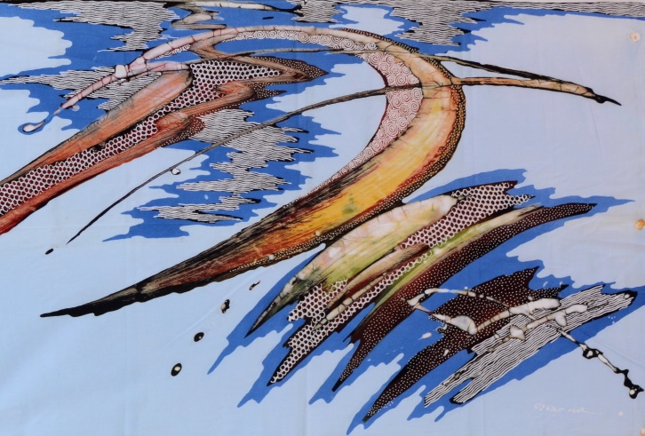 Gefertigt mit natürlichen Farbpigmenten und in traditioneller Batik-Arbeit hergestellt, zeigt dieses Bild ein abstraktes Motiv von 75 x 90 cm Größe.