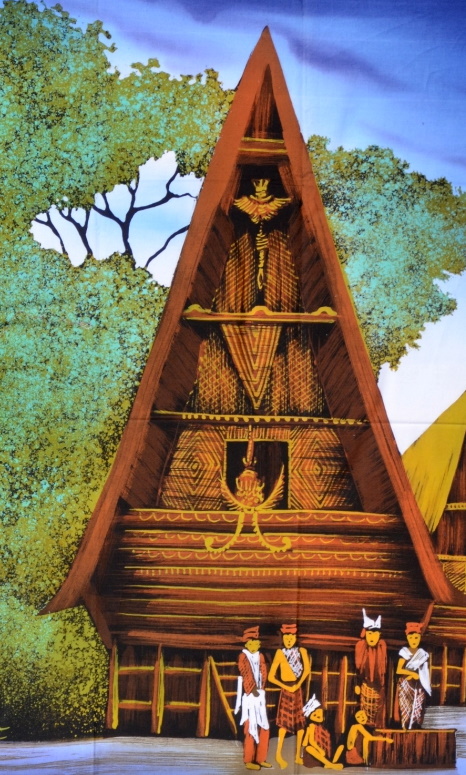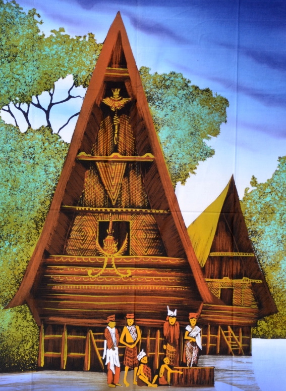 Batik Bild Stoffbild Spitzhütte, 75 x 90 cm