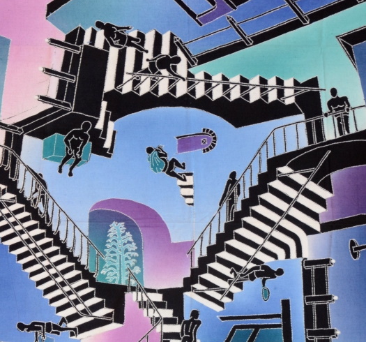 Batik Stoffbild Treppen treppauf-treppab, 75 x 90 cm