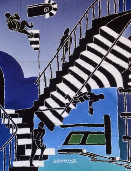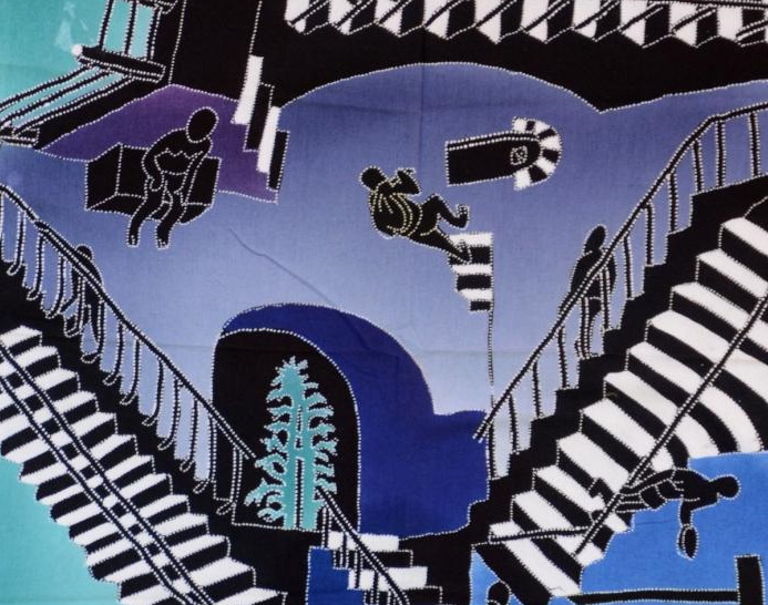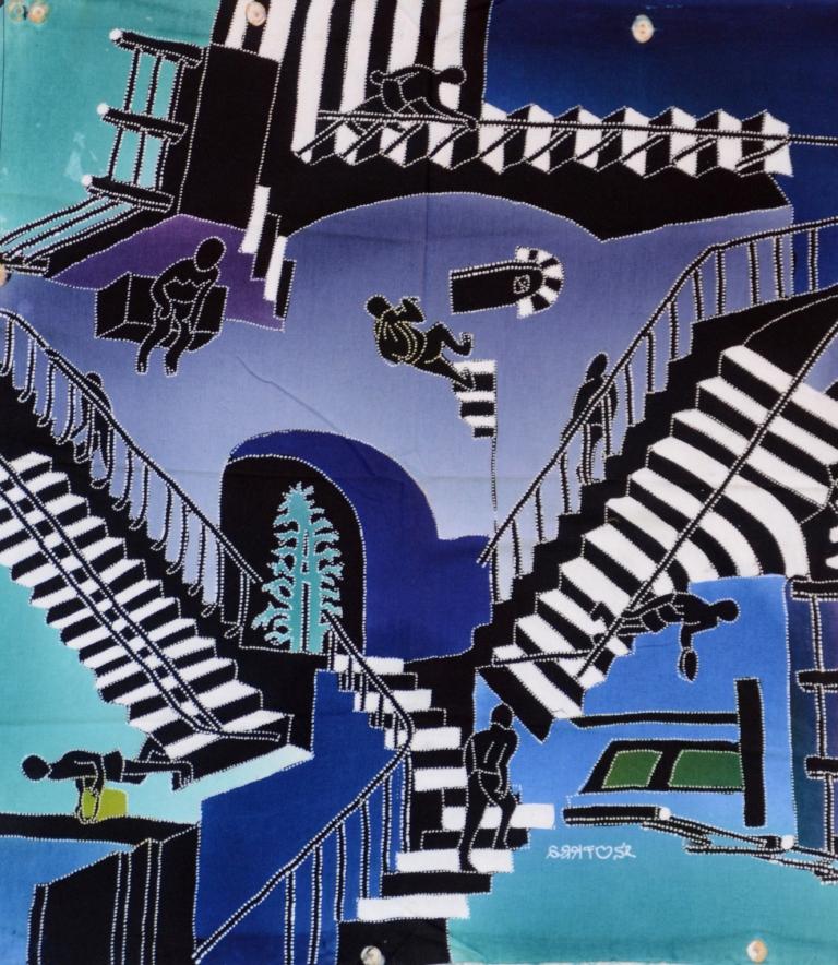 Batik Stoffbild Treppen unendlich, 45 x 50 cm