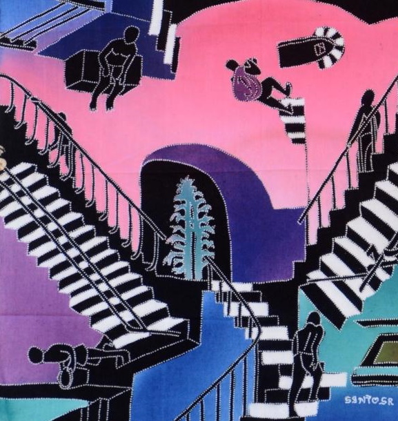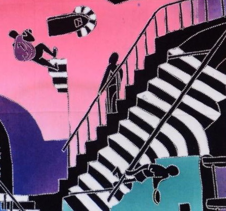 Mit dem besonderen Treppen Motiv in schönen Farben, ist dieses Batik-Kunstwerk einzigartig und nur einmal verfügbar.