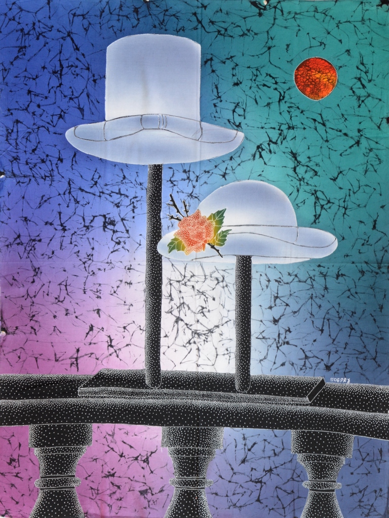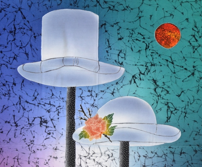 Batik Bild Stoffbild zwei Hüte, 75 x 90 cm