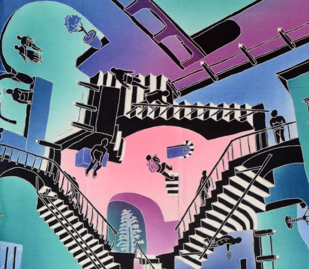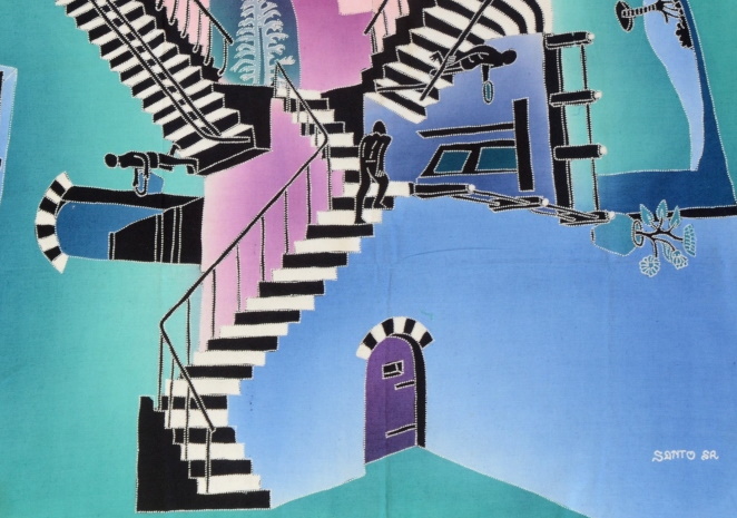 Batik Stoffbild Treppen rundrum, 75 x 90 cm