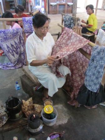 Jedes Batik-Detail ist sorgfältig mit Wachs aufgebracht, bevor es in aufwendigen Arbeitsgängen gefärbt wurde.