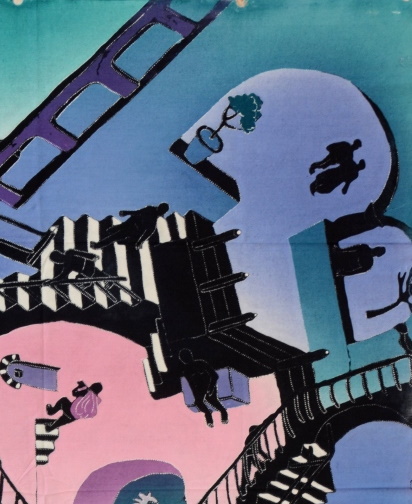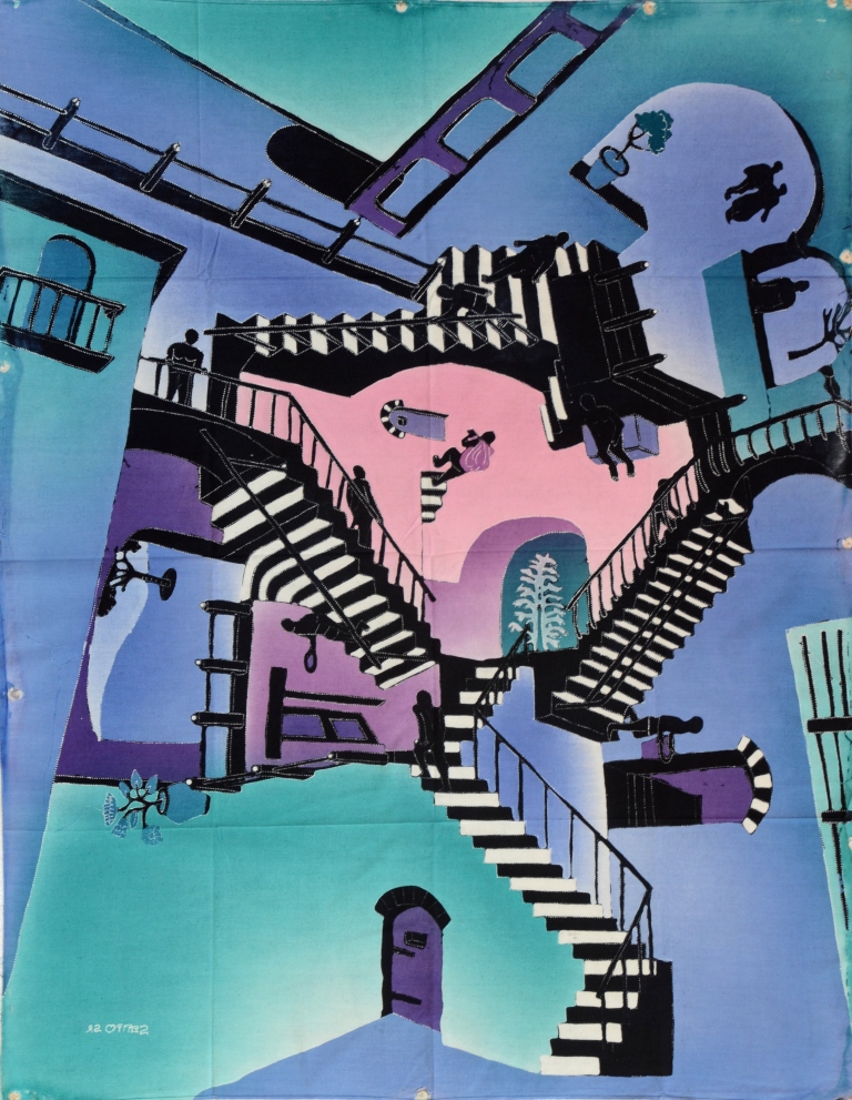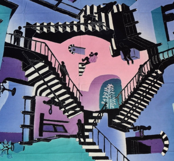 Batik Stoffbild Treppen trepp auf-trepp ab, 75 x 90 cm