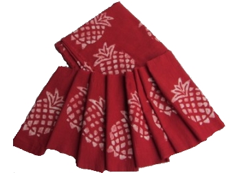 Wundervolle afrikanische rote Batik-Biertisch-Tischdecke mit einmaligem Ananas-Batik-Motiv und 8 passenden afrikanischen Stoff-Servietten.