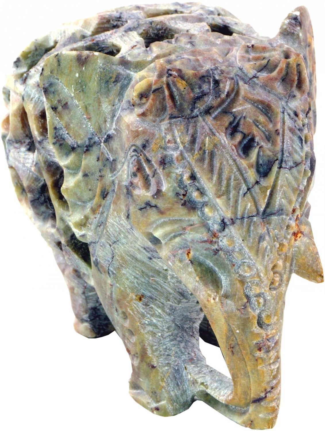 Die Elefanten Figur aus Speckstein ist ca. 6,5 cm hoch, 8 cm breit und 4,5 cm tief.