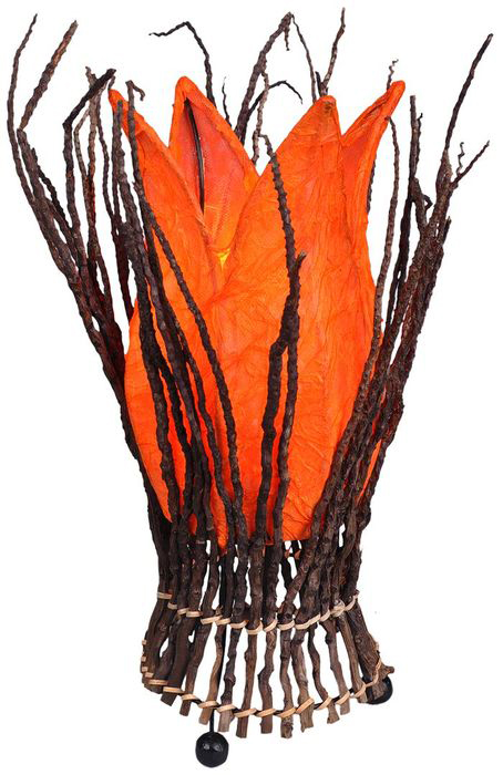 Einzigartige Tischlampe mit orangefarbenem Ölpapier und Zweigen aus Bali