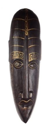 Die goldfarbige Bemalung unterstreicht die Besonderheit dieses Masken-Kunstwerks und macht es zu einem echten Blickfang.