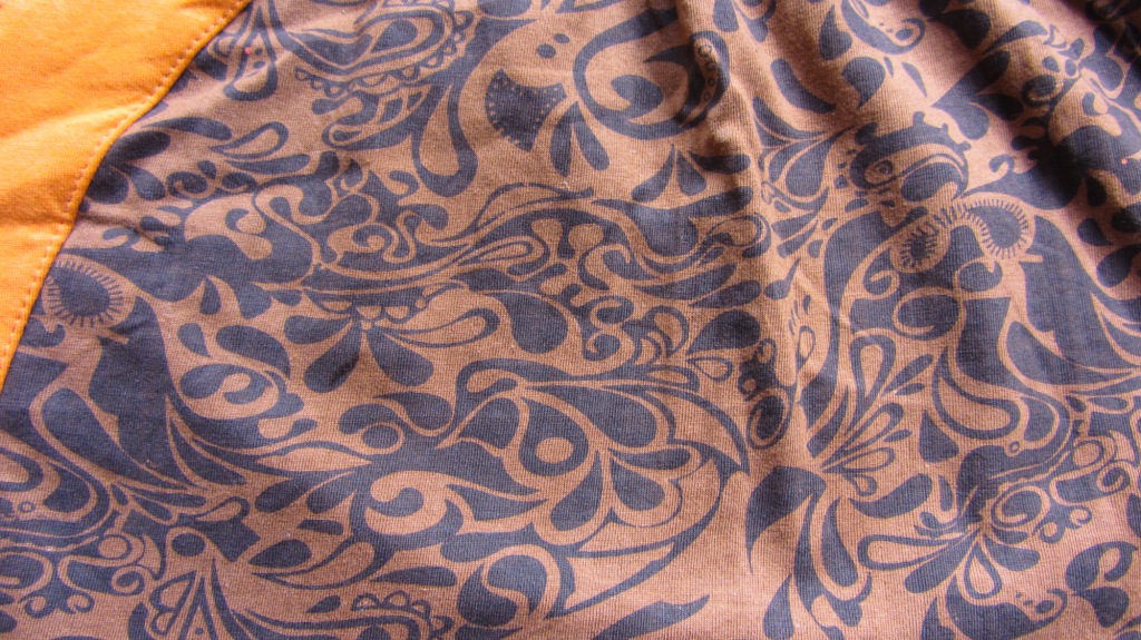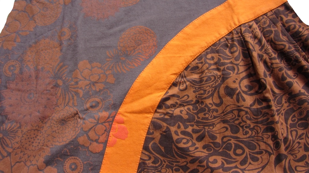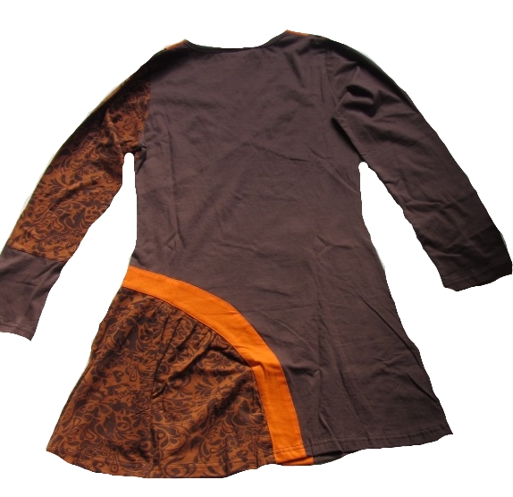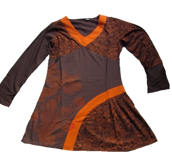 Das langärmlige Damen-Mini-Kleid in orange-braun ist ein wunderschönes Unikat im Tunika-Schnitt.