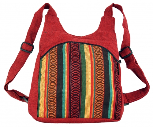 Roter Rucksack im Ethno-Look – ein echtes Unikat aus Nepal