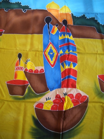 Das Markttag-Motiv auf Bali verleiht ihm eine exotische Note und macht ihn vielseitig einsetzbar: als farbenfrohe Strandmode sowie auch als exotische Tischdecke oder sommerliche Freizeitdecke.