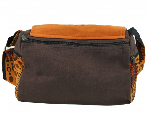 Orange-braune Umhängetasche im Ethno-Style mit farbigen Druckmotiven – ein echtes Unikat